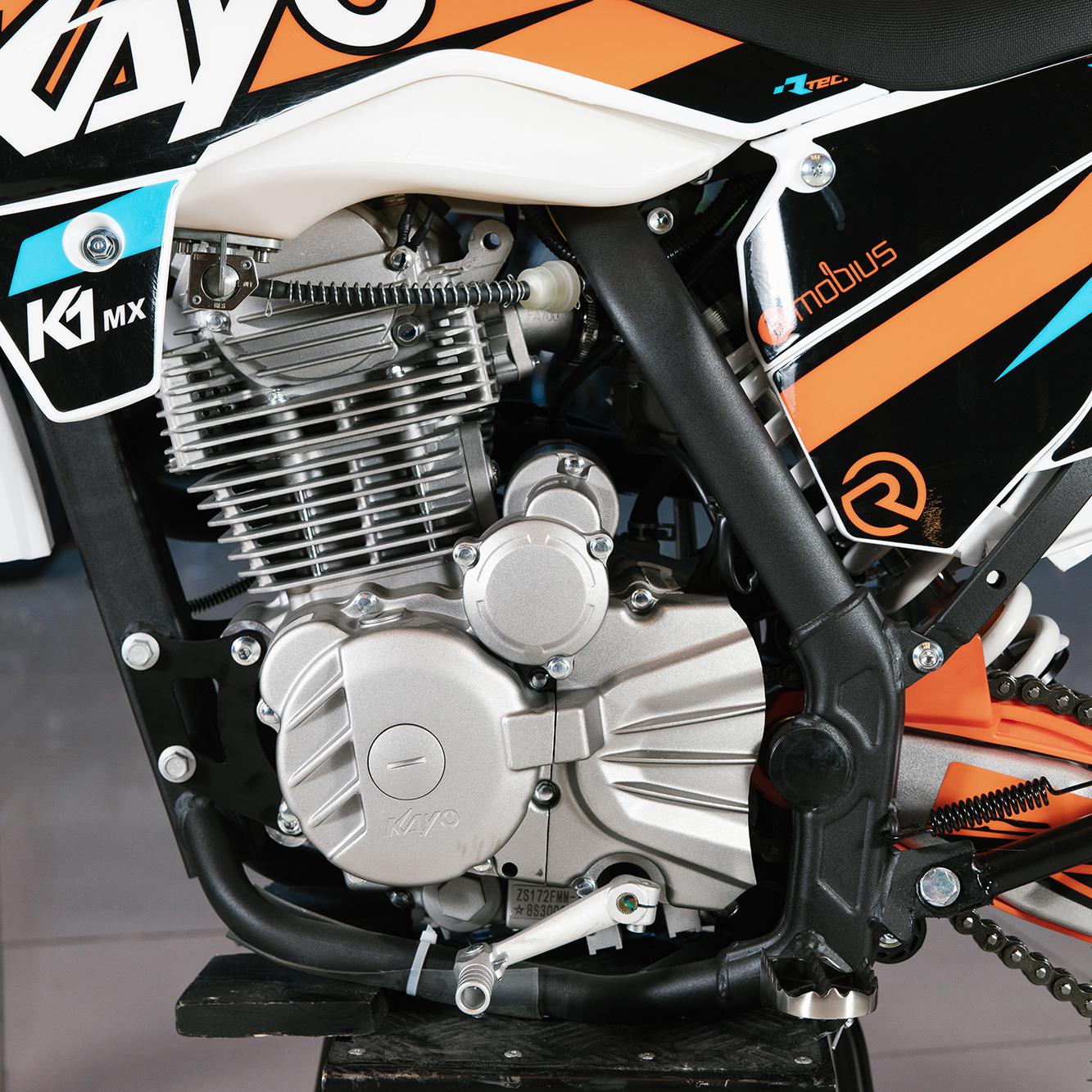 Мотоцикл оснащён одноцилиндровым 4-тактным двигателем воздушного охлаждения (ZONGSHEN ZS172FMM) объёмом 249 см3, который обеспечивает высокую мощность (21 л.с.) и крутящий момент, что позволяет развивать большую скорость и с лёгкостью преодолевать трассы со сложным рельефом. Карбюраторная система подачи топлива с карбюратором NIBBI PE30 обеспечивает бесперебойную работу техники в самых жёстких условиях эксплуатации, простоту и лёгкость в обслуживании, а также неприхотливость к качеству топлива. Аппарат оснащён 5-ступенчатой механической коробкой передач с классической схемой “1-N-2-3-4-5”.